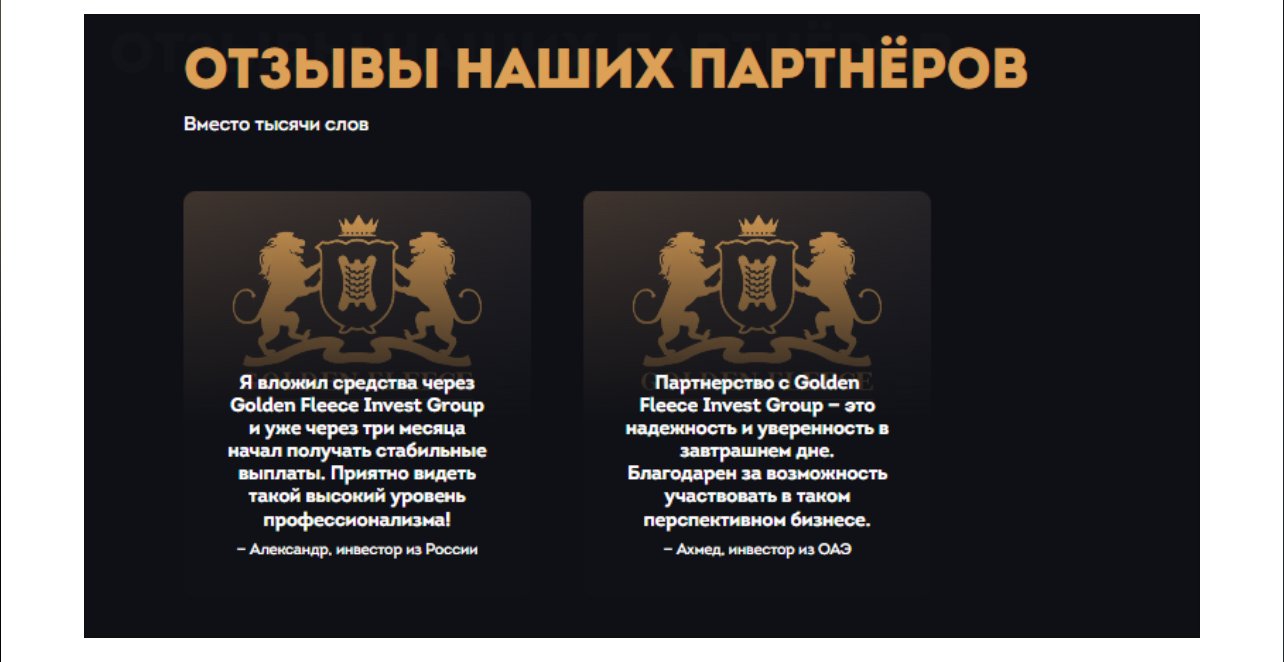 Golden Fleece Invest Group does not have the appropriate permission, and the company's activities are not fully legal. At the same time the site does not state that the organization provides brokerage services. It is claimed that the company is engaged in attracting investments in gold and metallurgy.