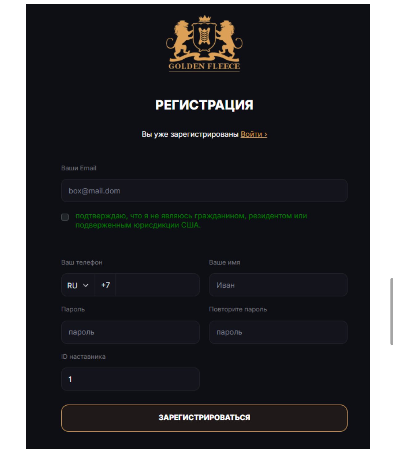 The project has two websites, both portals are translated into Russian and are identical in content. The domain golden-fleece io was registered in August 2024.