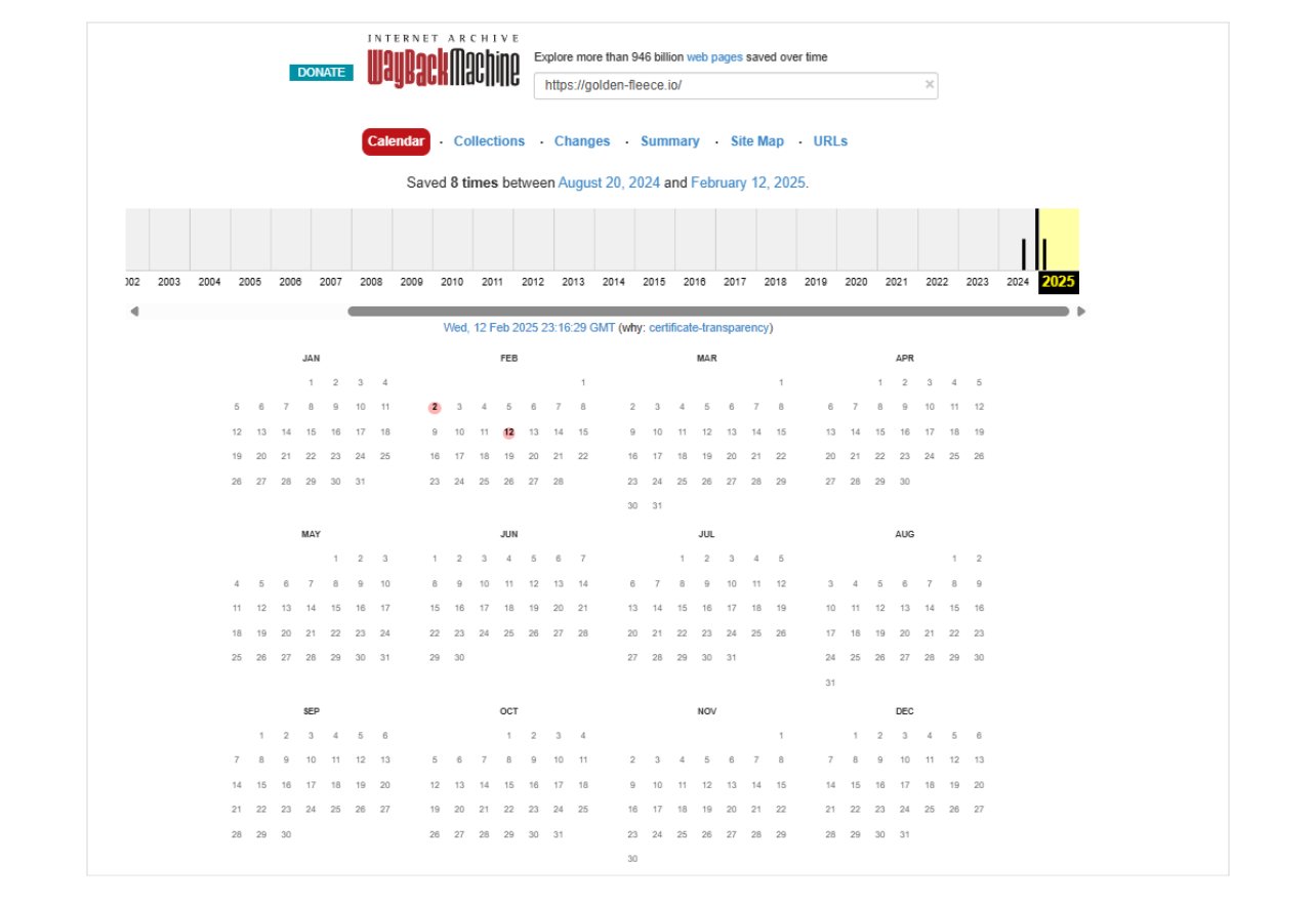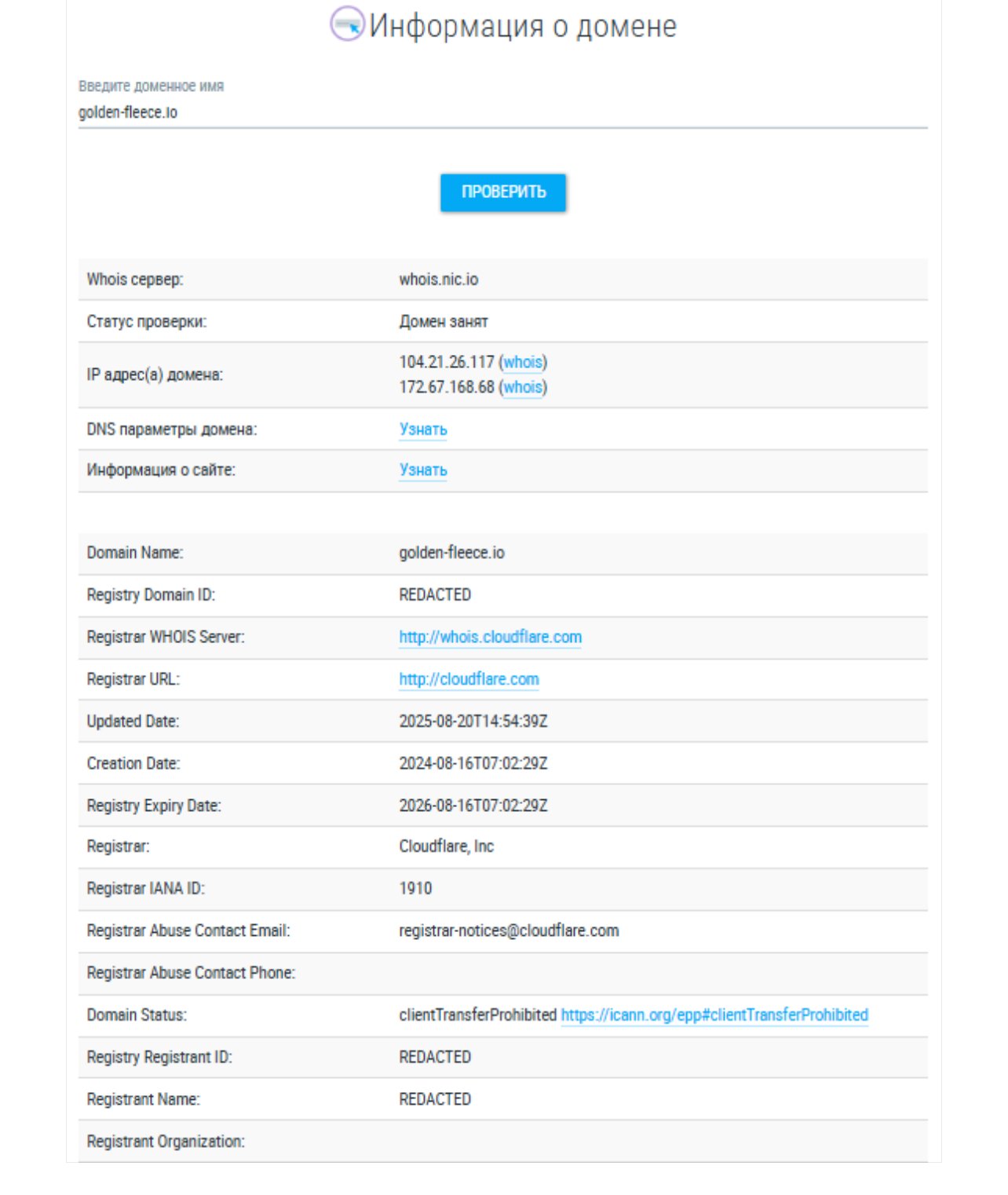 Also in 2025 an address goldenfleece group was created, but information about it is not supported by most Whois services. We analyzed archived versions of the sites.